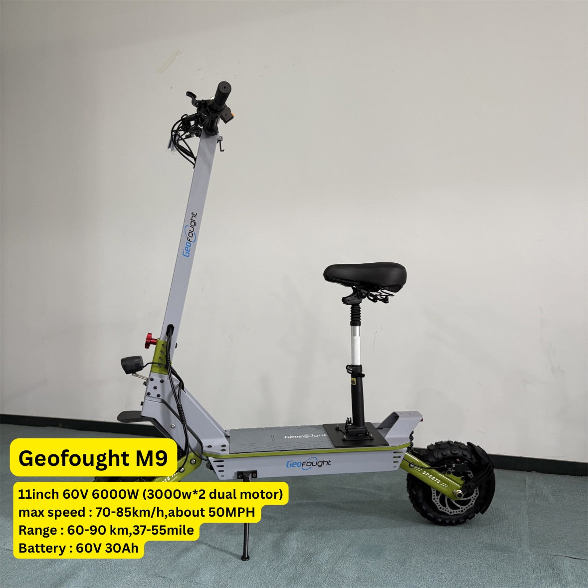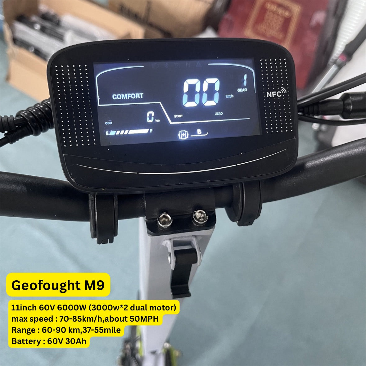 Geofought M9 – 2025 Dual Motor 6000W Electric Scooter | 60V 30Ah Battery | Up to 85km/h | With Seat